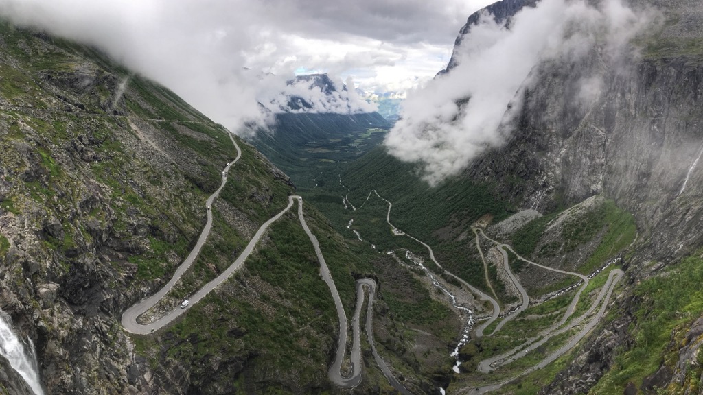 Nejznámější silnici v Norsku tvoří 11 serpentýn, které překonávají nádherné údolí Isterdalen. Nad sjezdem do údolí je výhlídková plošina, ze které mimo krásného výhledu na silnici samotnou můžete obdivovat i vodopád Stigfossen.